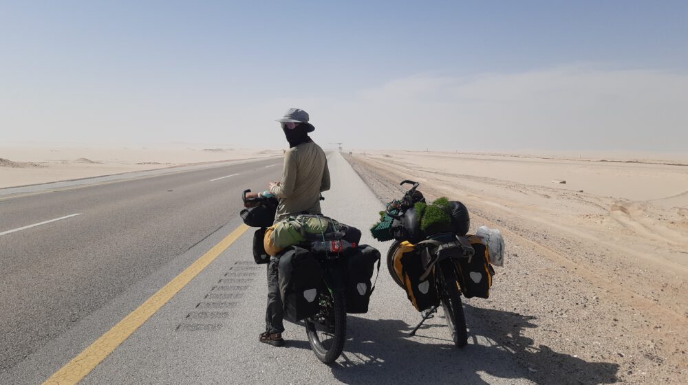 Ausgestattet mit Stirnlampen, ihrem Zelt und den inzwischen legendären Fahrrädern reisen sie an einem Abend gemeinsam mit ihren Zuhörer*innen durch den afrikanischen Busch, über die arabische Halbinsel und zu den Bergnomaden des Iran.